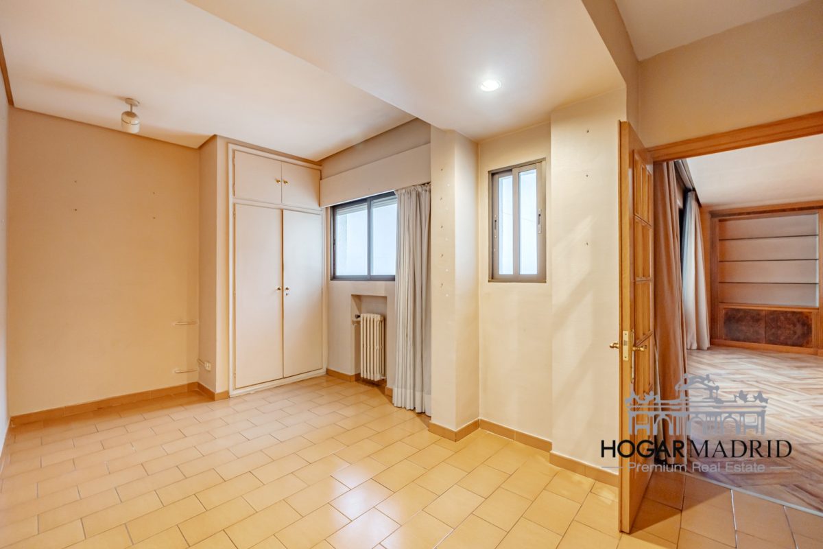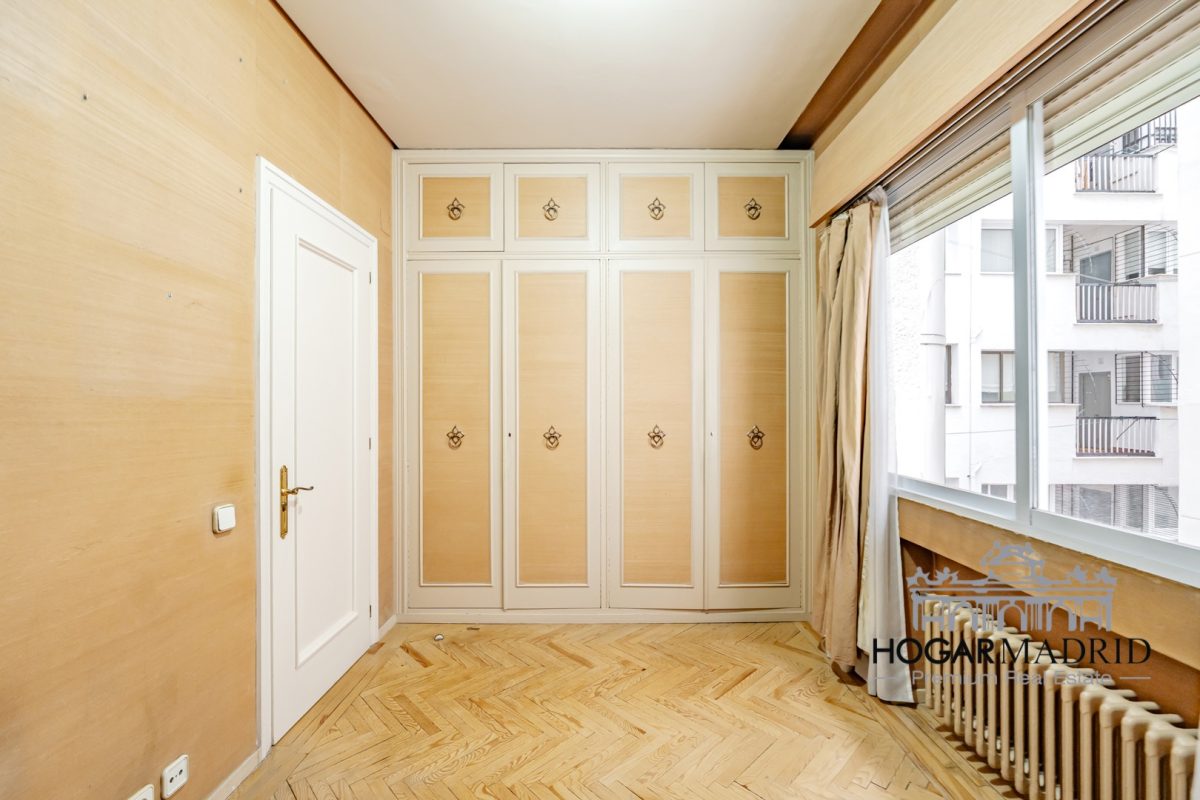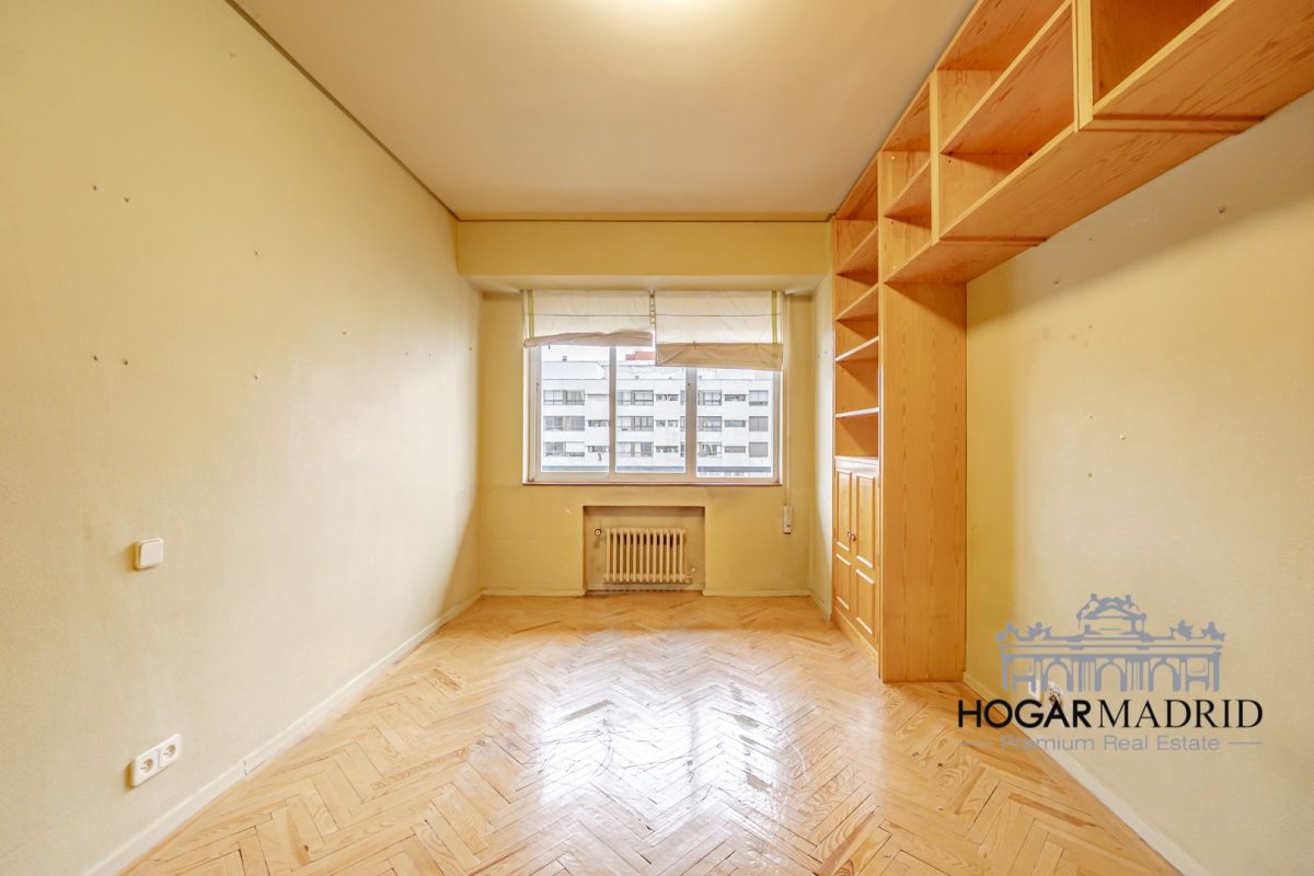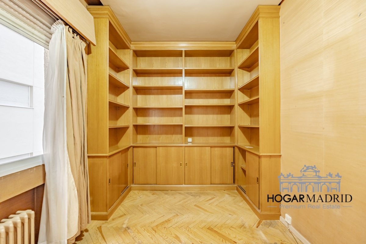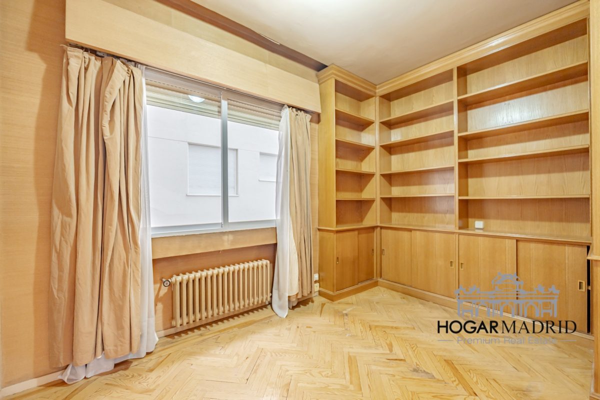 Piso señorial ubicado en el barrio más elegante de Chamberí, con todo tipo de servicios y un excelente vecindario, añade la ventaja de contar con una estupenda plaza de garaje y un trastero de unos 15 m2.