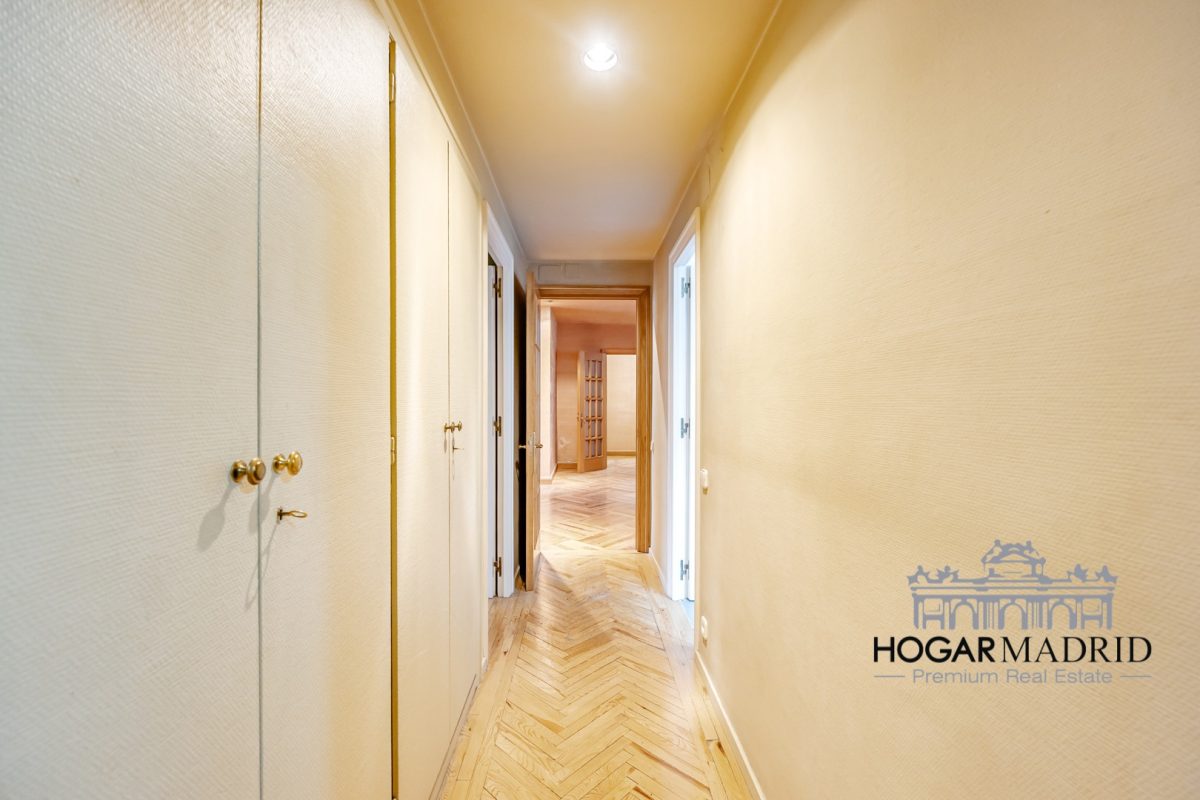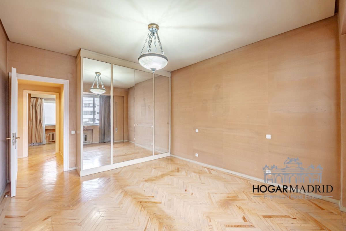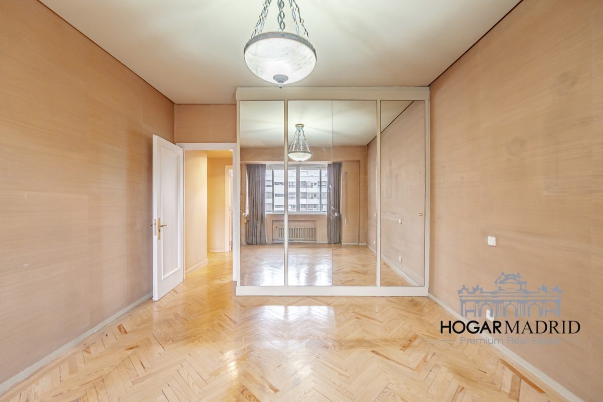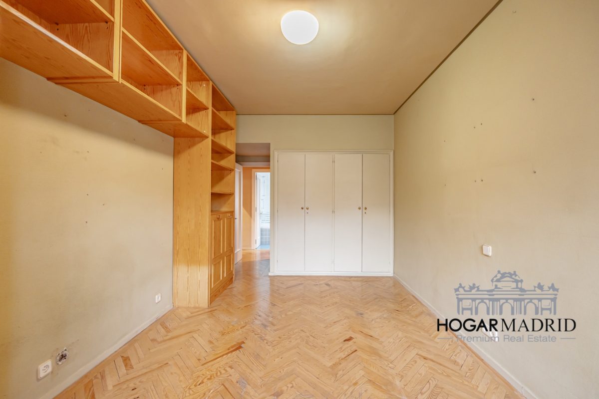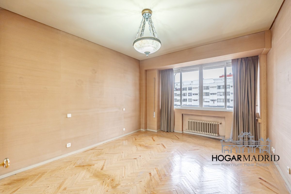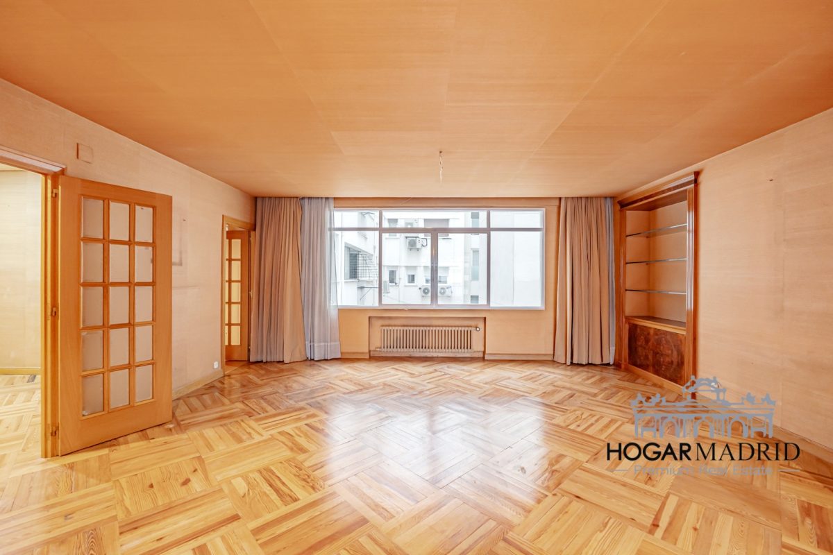 Piso señorial ubicado en el barrio más elegante de Chamberí, con todo tipo de servicios y un excelente vecindario, añade la ventaja de contar con una estupenda plaza de garaje y un trastero de unos 15 m2.