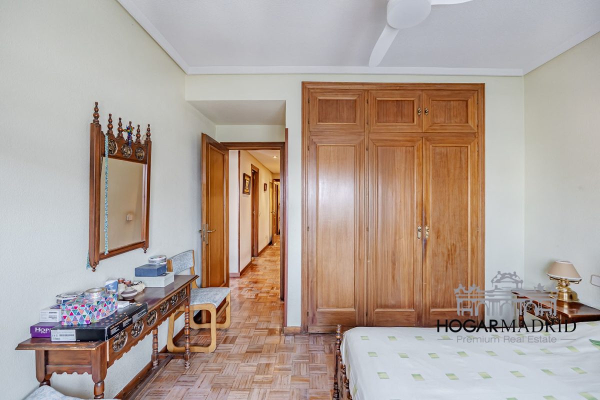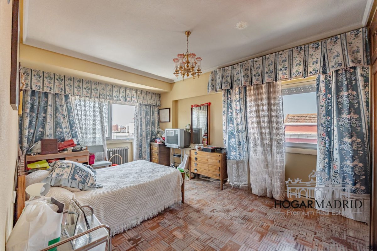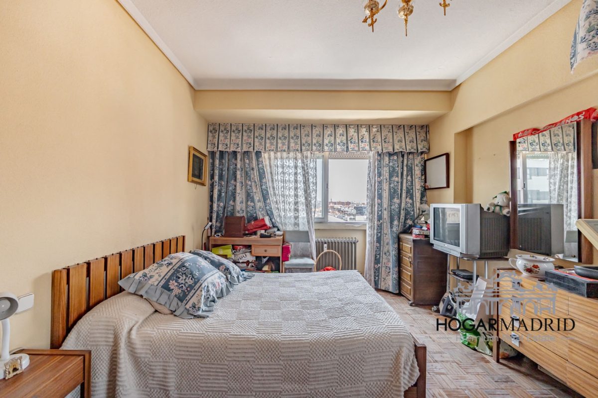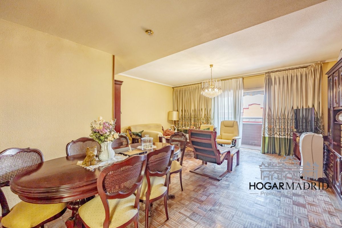 Piso alto con espléndidas vistas urbanas, completamente exterior, 128 m2 distribuidos en vestíbulo, bonito salón en dos ambientes con salida a terraza, tres buenos dormitorios con armarios empotrados, dos baños y cocina independiente. La planta tiene un diseño cuadrado que optimiza el espacio disponible, desde todas las estancias, tanto salón como dormitorios, se disfruta de vistas muy amplias por encima de los edificios aledaños.