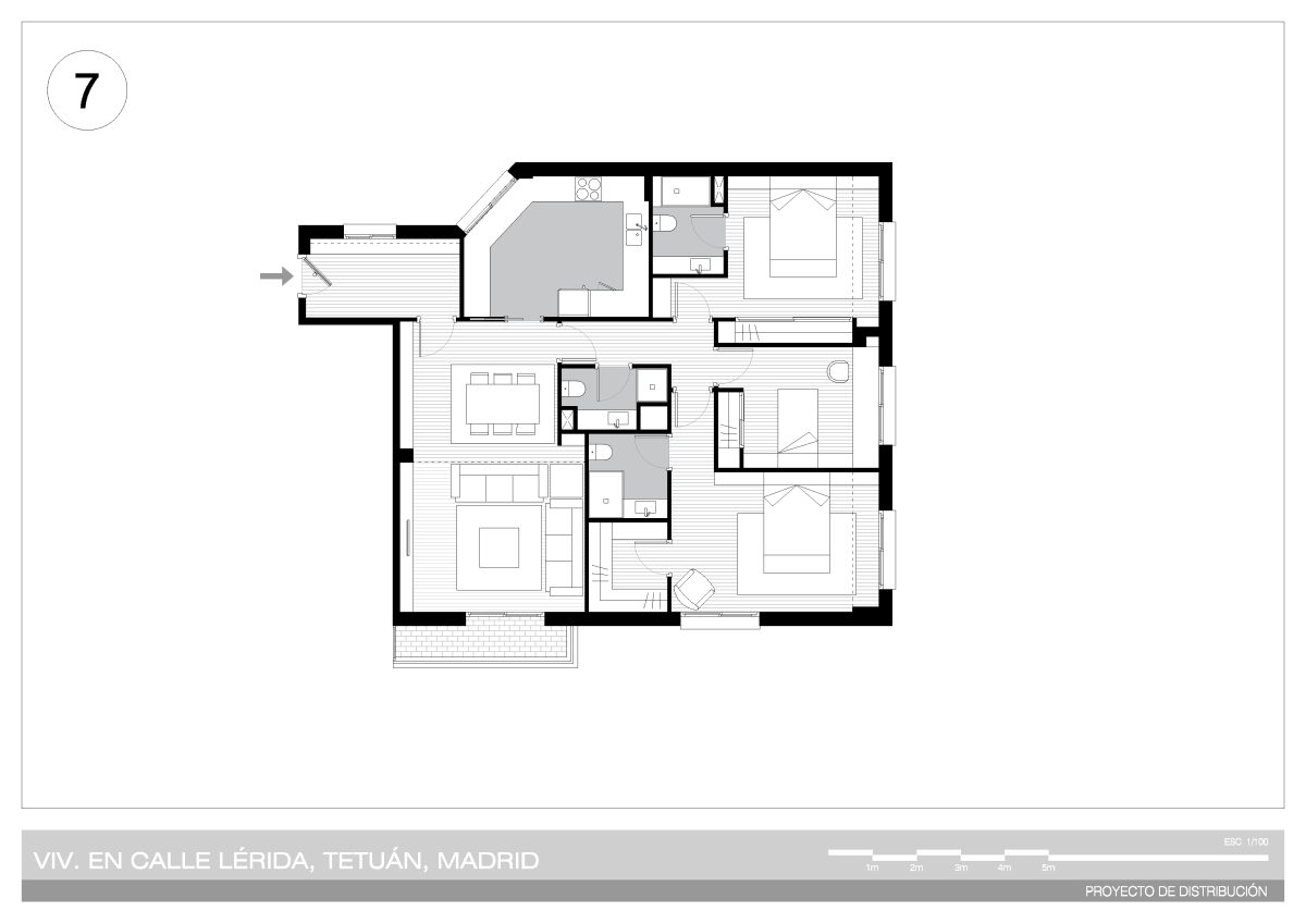 Por su altura y las dos orientaciones de que dispone es una vivienda alegre, luminosa y muy tranquila; las divisiones están realizadas a base de tabiquería por lo que resulta muy fácil adaptarla a distintas distribuciones según necesidades.
