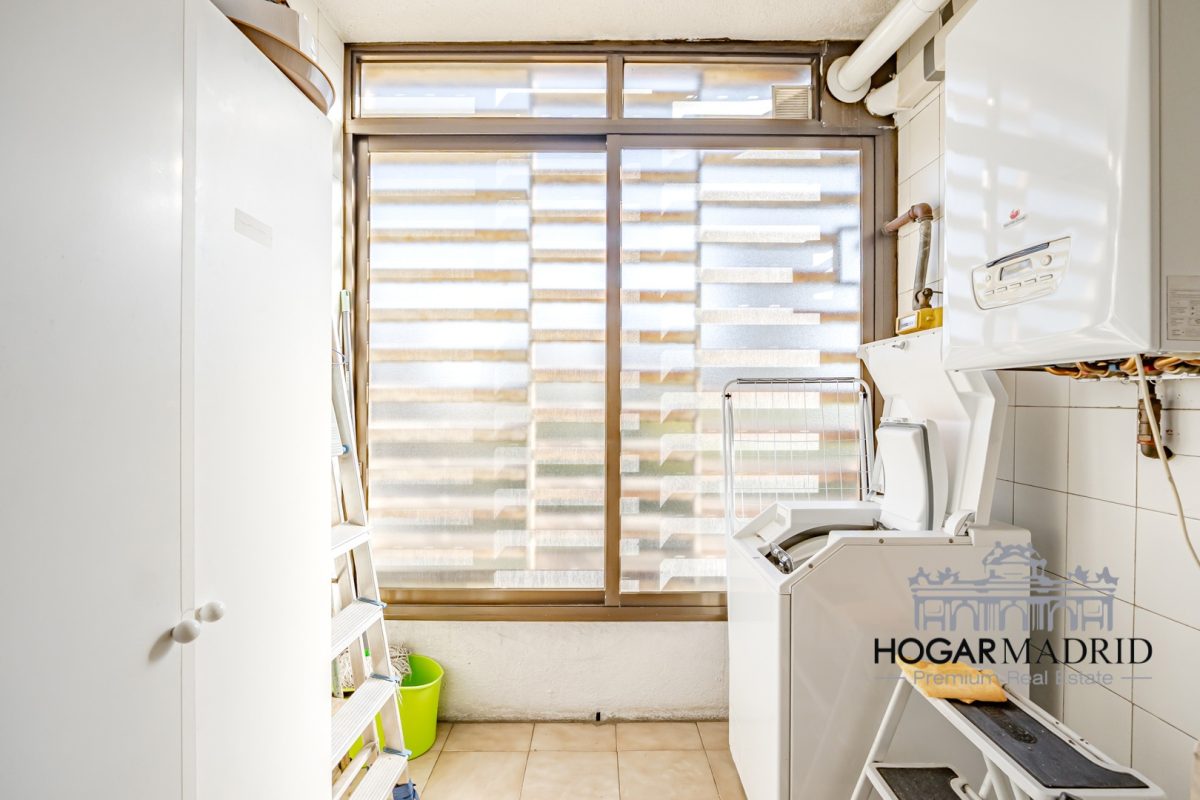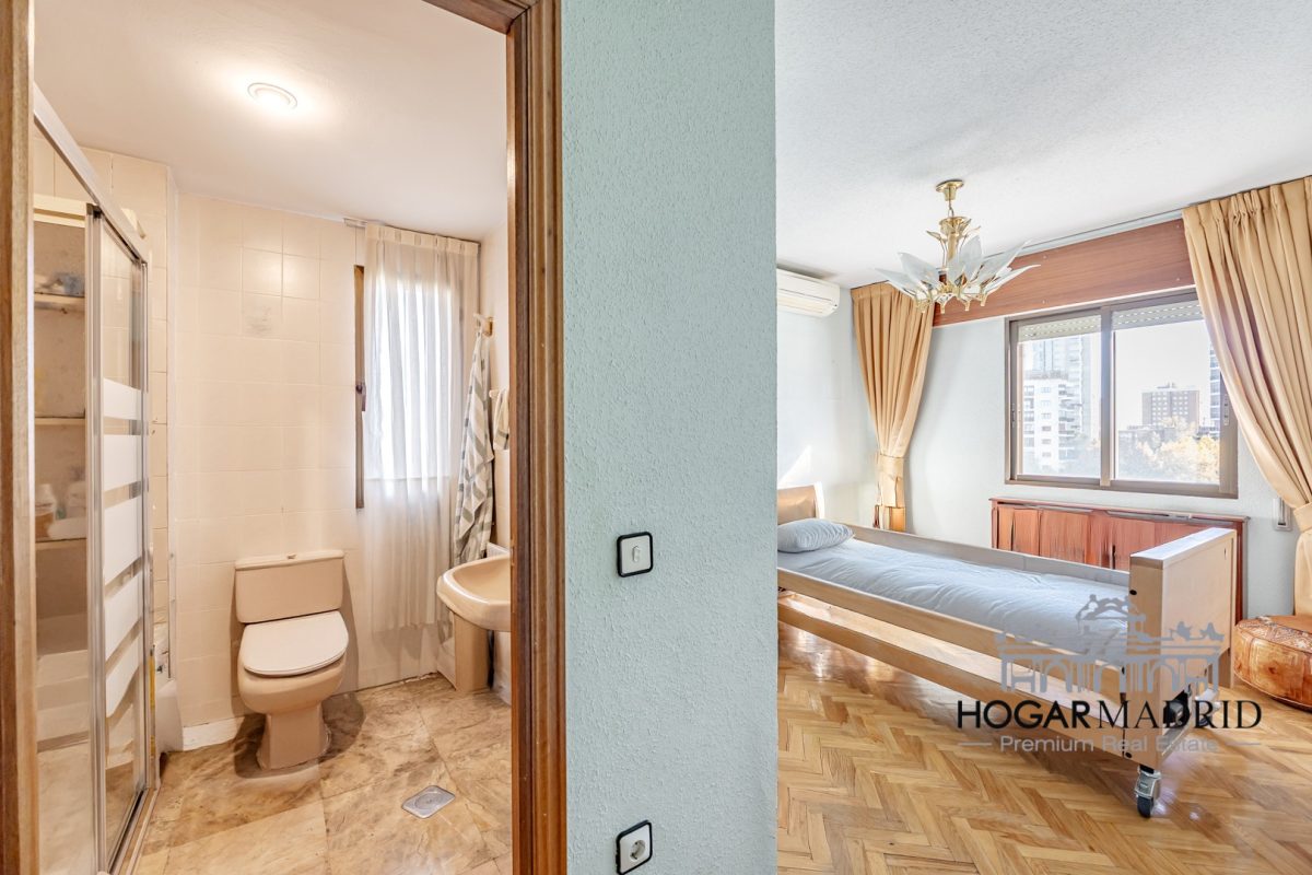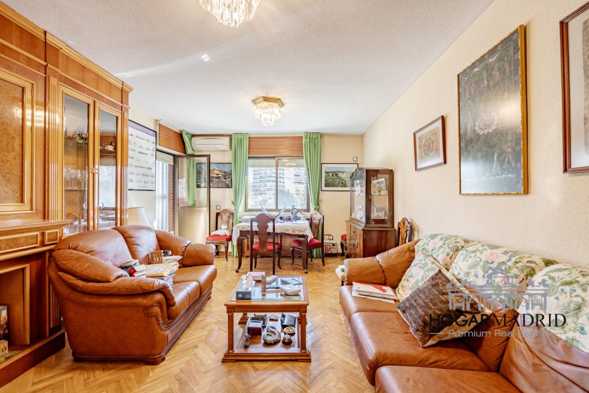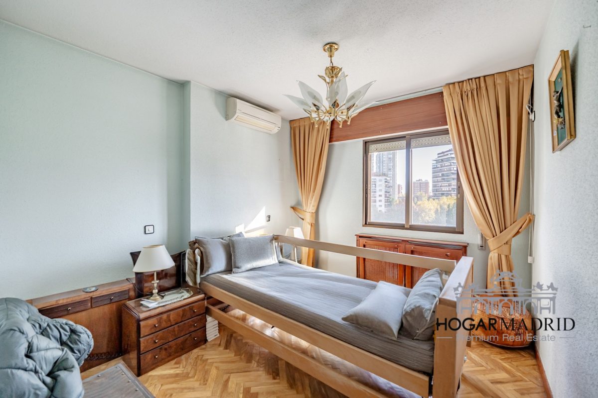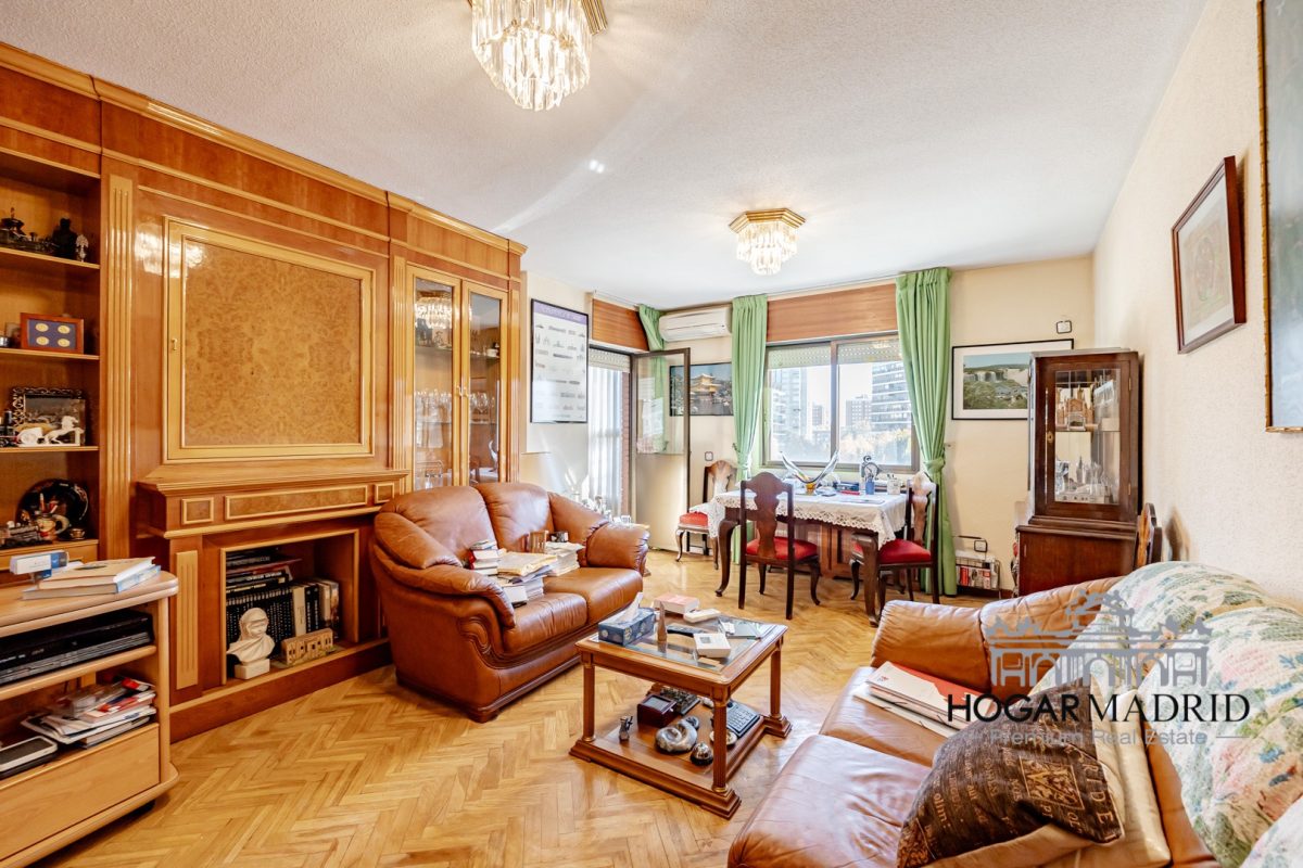 Piso muy bien situado en Chamartín, con excelentes comunicaciones por transporte público y salida inmediata a M30, en una urbanización con piscina y jardincillo; es una zona con todo tipo de servicios, zonas verdes y centros educativos, está situado junto al proyecto de Madrid Norte. Buena finca con portero, portal elegante, amplios rellanos, dos ascensores, suministros centrales y cómoda plaza de garaje de buen tamaño, con acceso directo y sin necesidad de maniobras para aparcar.