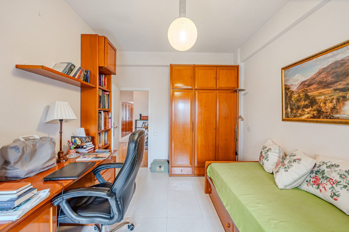 Todas las estancias tienen grandes ventanas exteriores y resultan muy luminosas, comunican con la terraza el salón, el despacho y el dormitorio principal. Es un piso de planta muy regular con divisiones a base de tabiquería que permite múltiples distribuciones alternativas, como piso familiar aporta comodidad y amplitud y un bonito espacio para disfrutar al aire libre en su terraza (20 m2) con vistas al jardín. Luminoso, alegre, completamente exterior y con aparcamiento en superficie.