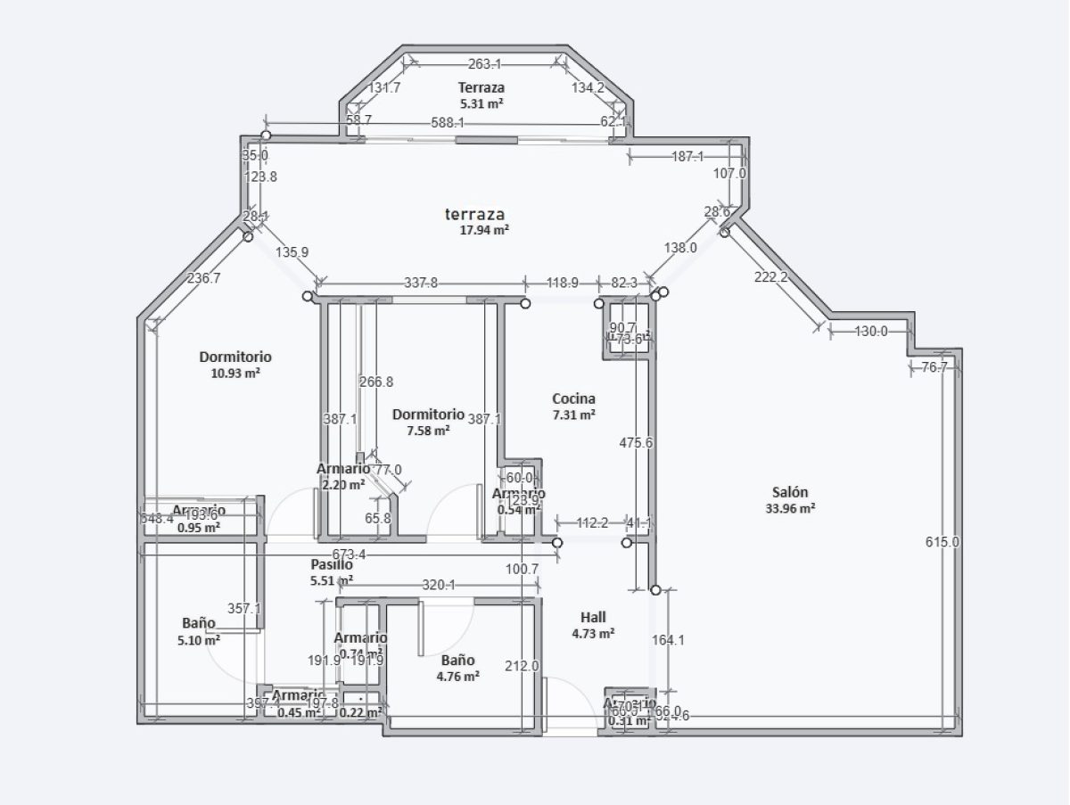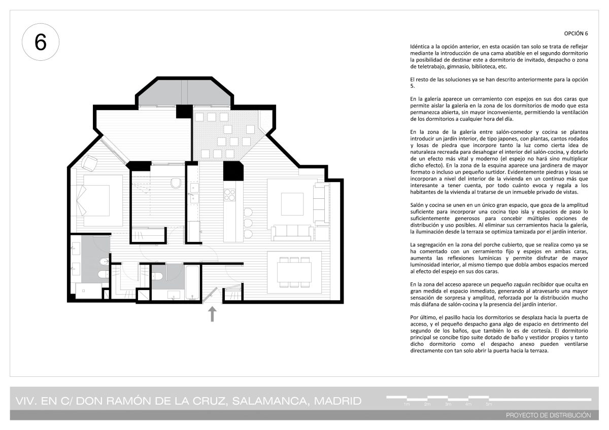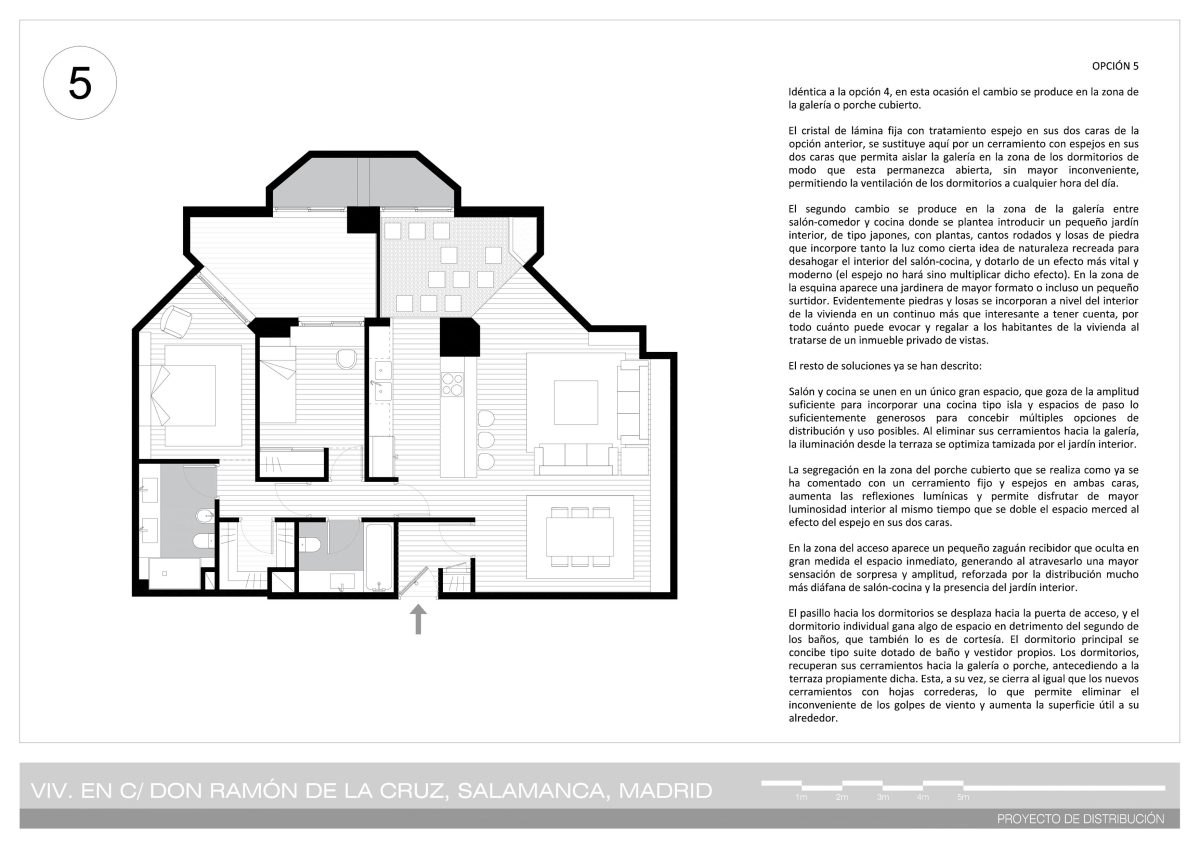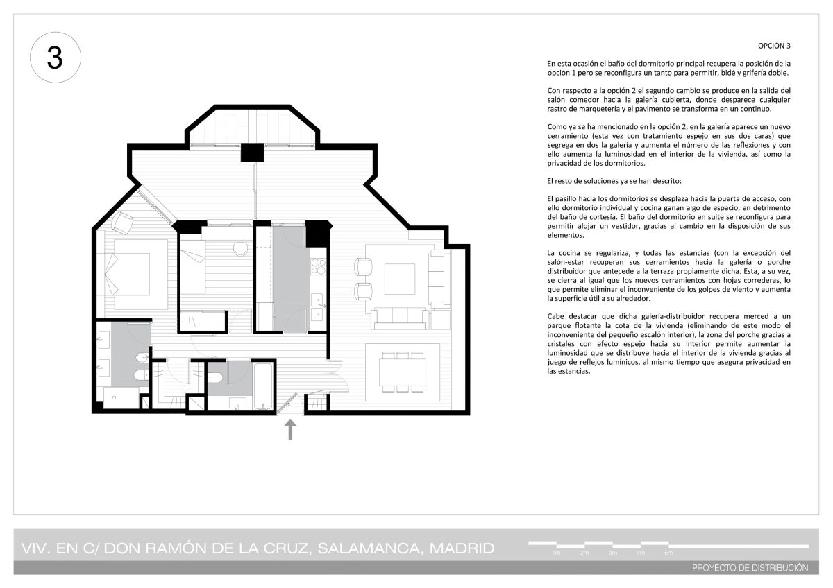 Piso en buen estado, 139 m2 distribuidos en vestíbulo de entrada, un gran salón con salida a luminoso patio, dos dormitorios amplios con armarios empotrados, dos baños completos y cocina independiente muy bien comunicada con el salón. Este piso se puede adaptar muy fácilmente a dos dormitorios en suite con baño, o también a un piso familiar de tres dormitorios y dos baños; las separaciones de las estancias están realizadas por medio de tabiquería que permite varias alternatvias de distribución.