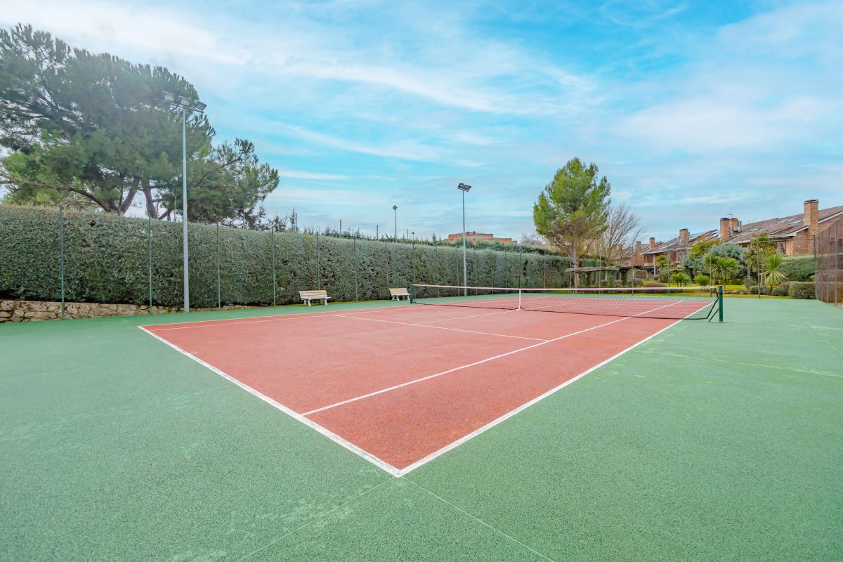 En lo referente a zonas comunes, la urbanización cuenta con piscina (con una parte para los más peques), rodeada de césped, y unos jardines arbolados preciosos. Y en otra zona separada, cancha de tenis y 2 modernas pistas de pádel, también rodeadas de mucho verde. La comunidad dispone de seguridad durante los meses de verano.