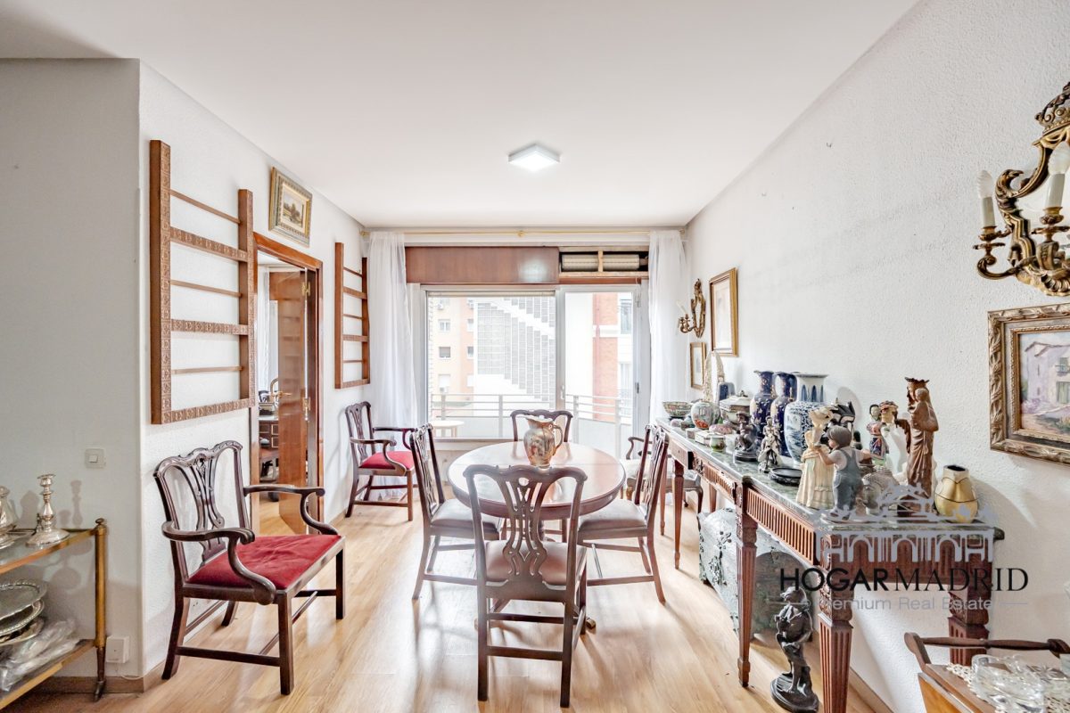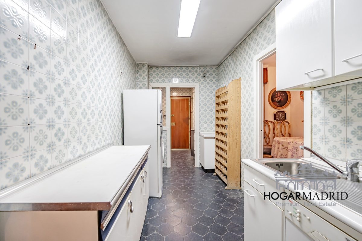 Piso para reformar de 158 m2, actualmente se distribuye en gran recibidor de entrada, salón en dos ambientes y salida a terraza con buenas vistas a Claudio Coello a través de patio de manzana; tres dormitorios, dos baños y zona de servicio. La zona de servicio consta de oficio, cocina y habitación de servicio con baño.