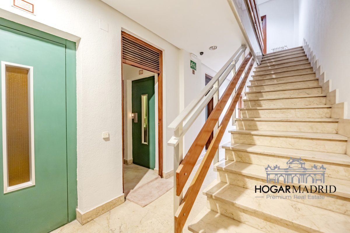 La finca cuenta con buen portal, portero, tres ascensores, entrada de servicio, suministros centrales, trastero privado y plaza de garaje con acceso directo.