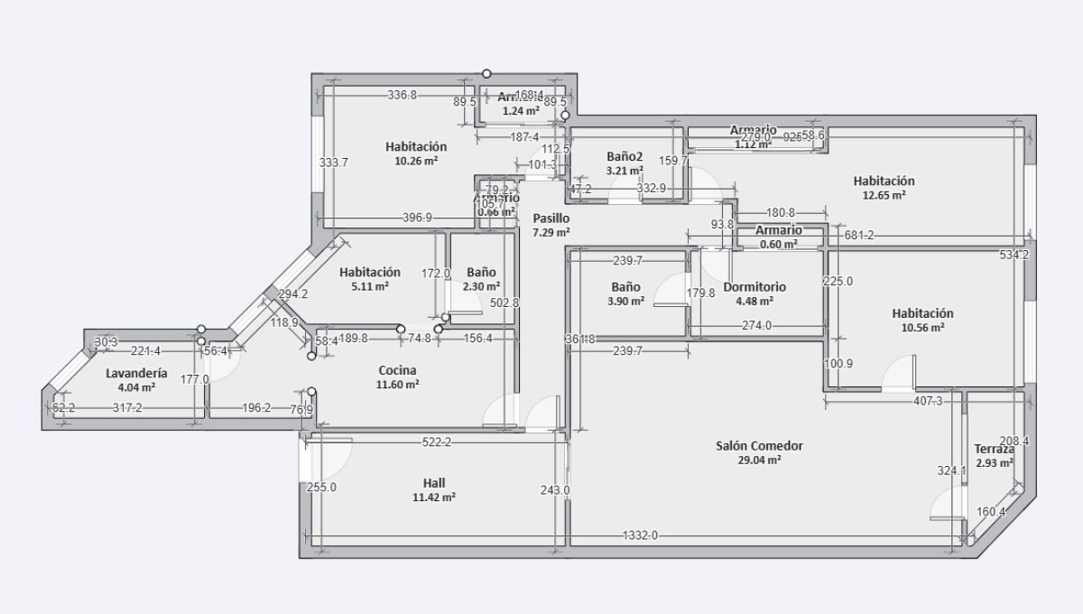 Las separaciones de las estancias están realizadas mediante tabiquería y la planta de la vivienda es cuadrada lo que facilita la adaptación a diferentes distribuciones según necesidades.