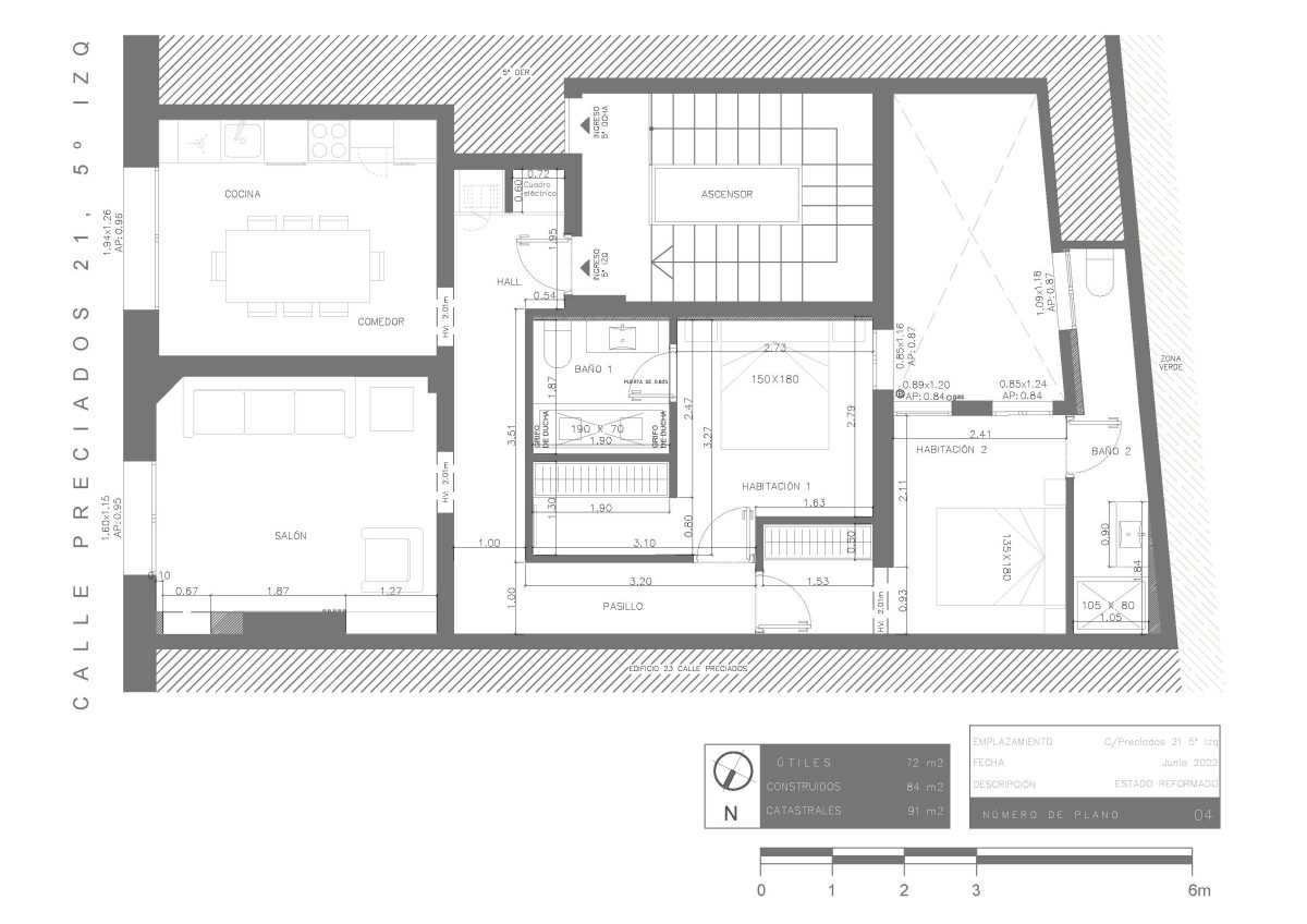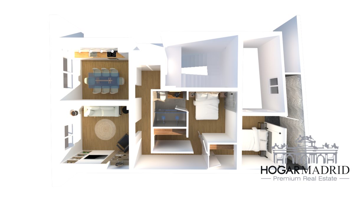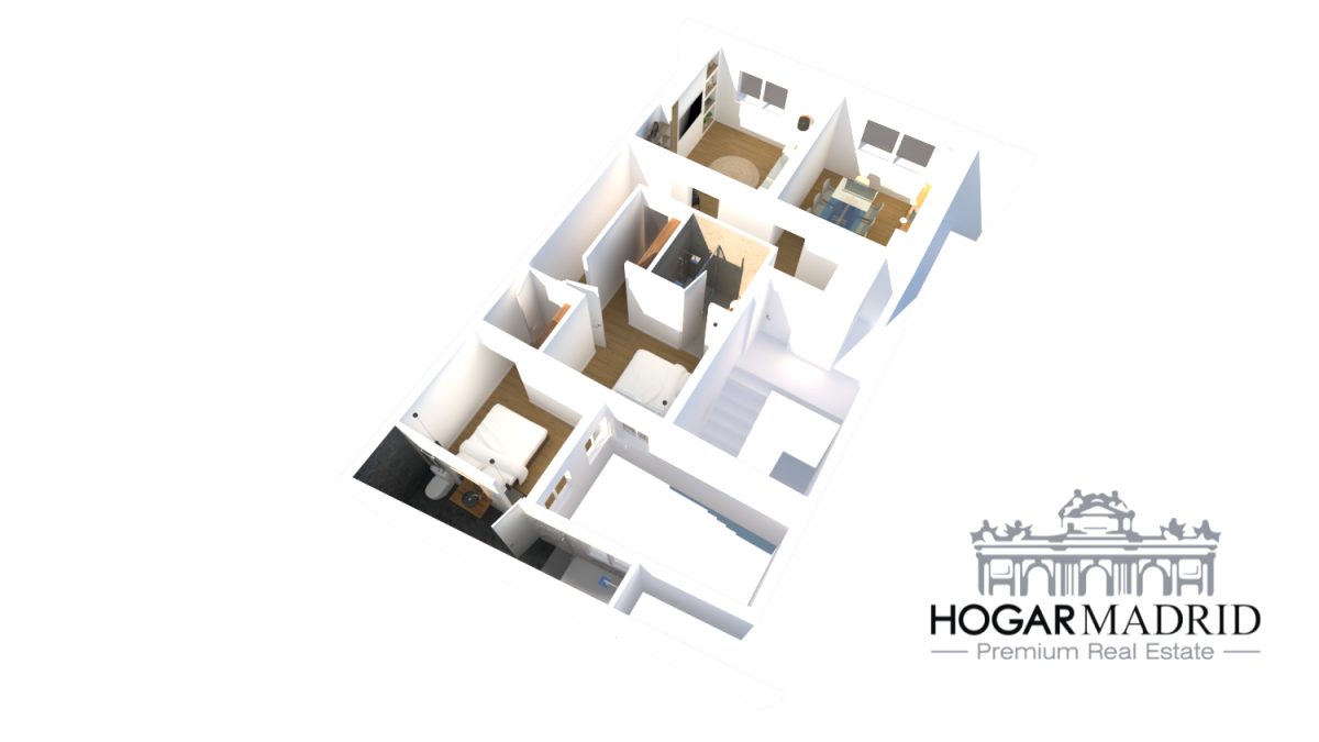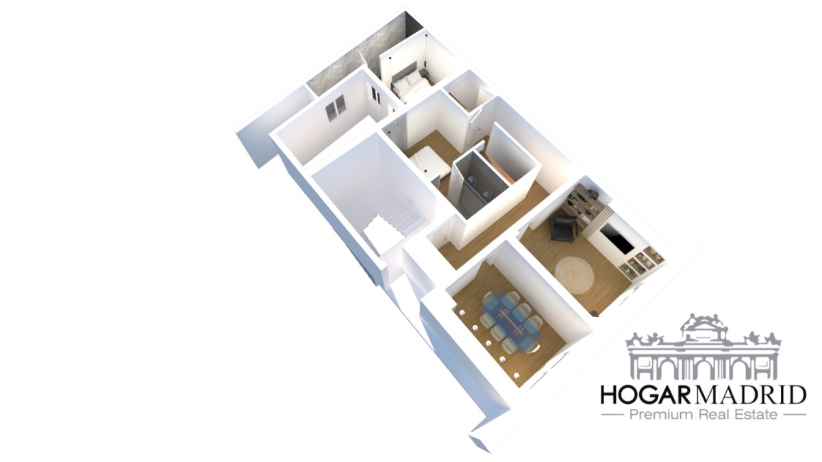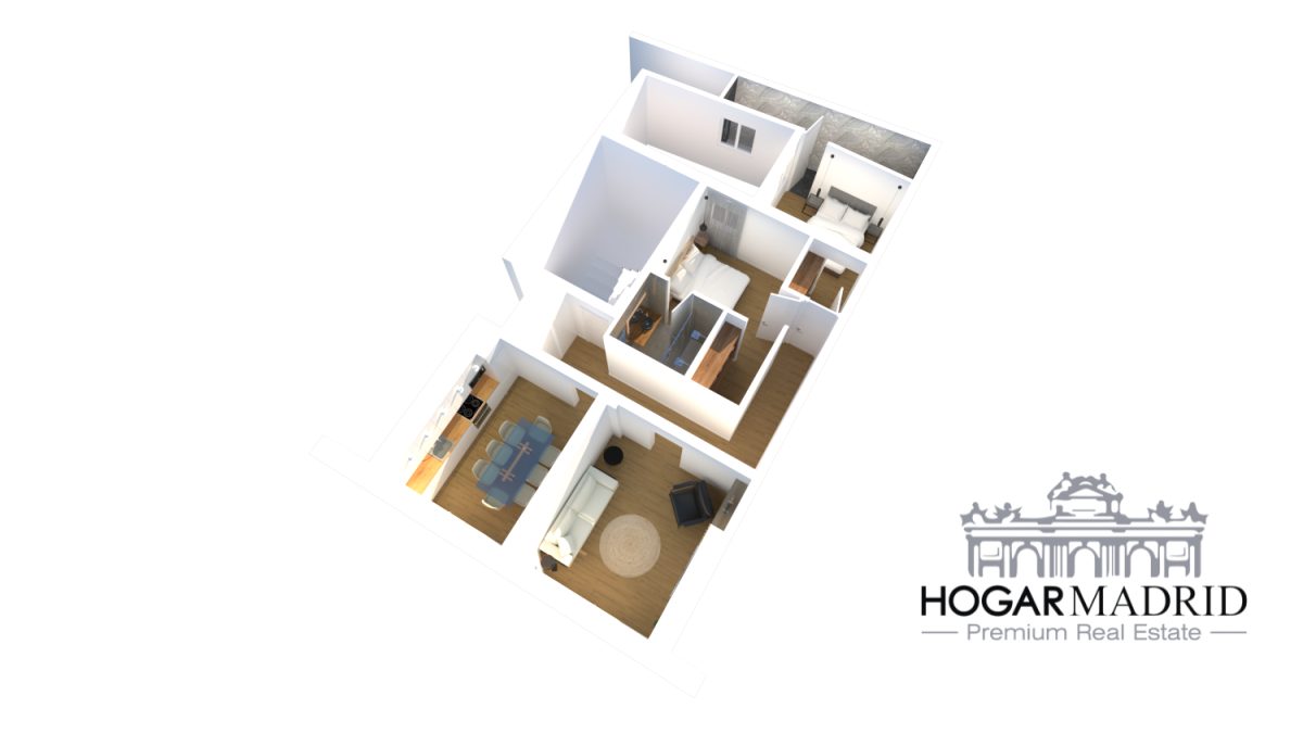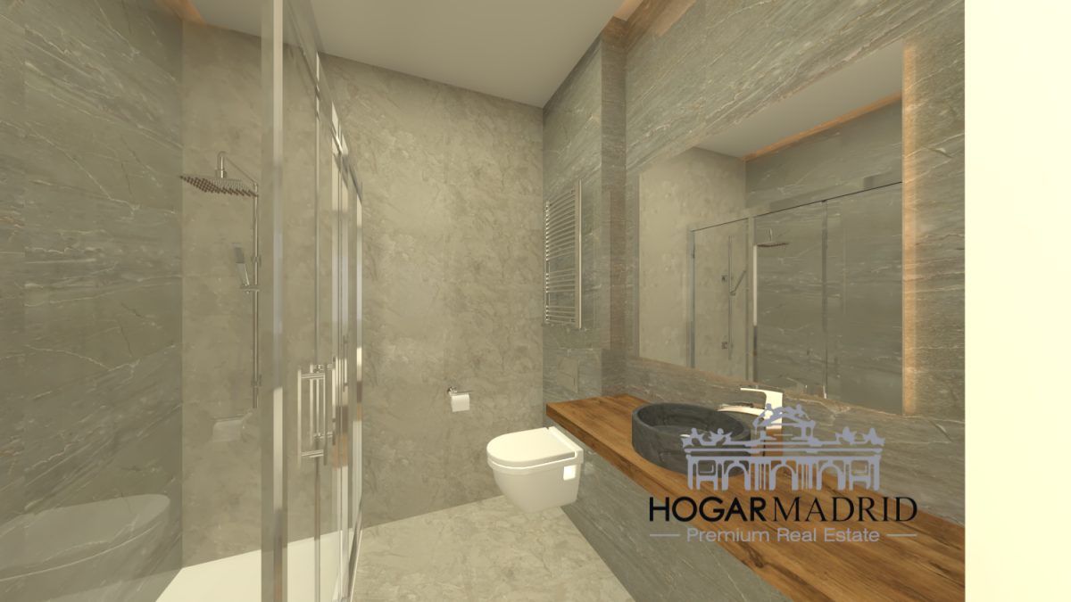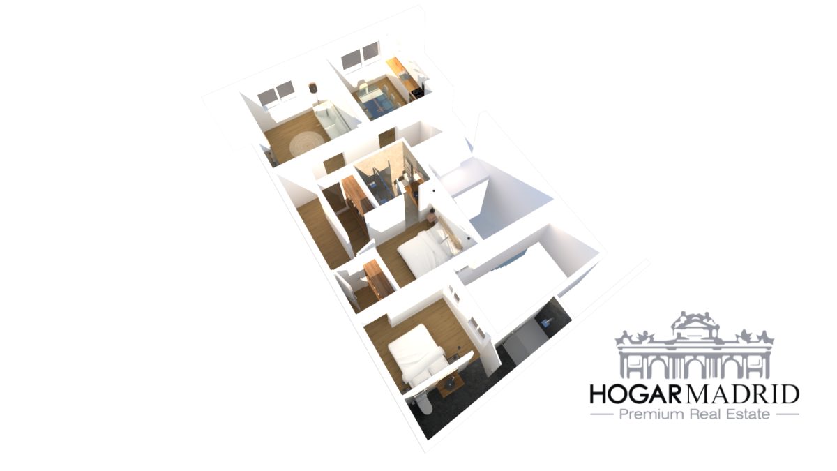 Piso a estrenar en quinta altura exterior, consta de salón, cocina con comedor y dos dormitorios en suite con dos baños, se entrega completamente equipado y amueblado a medida, con todos los detalles. Construido con las mejores calidades y atención a los detalles. Ubicación de lujo, mucha luz y sol, quinta altura, vistas muy agradables al centro de Madrid. Para entrar.